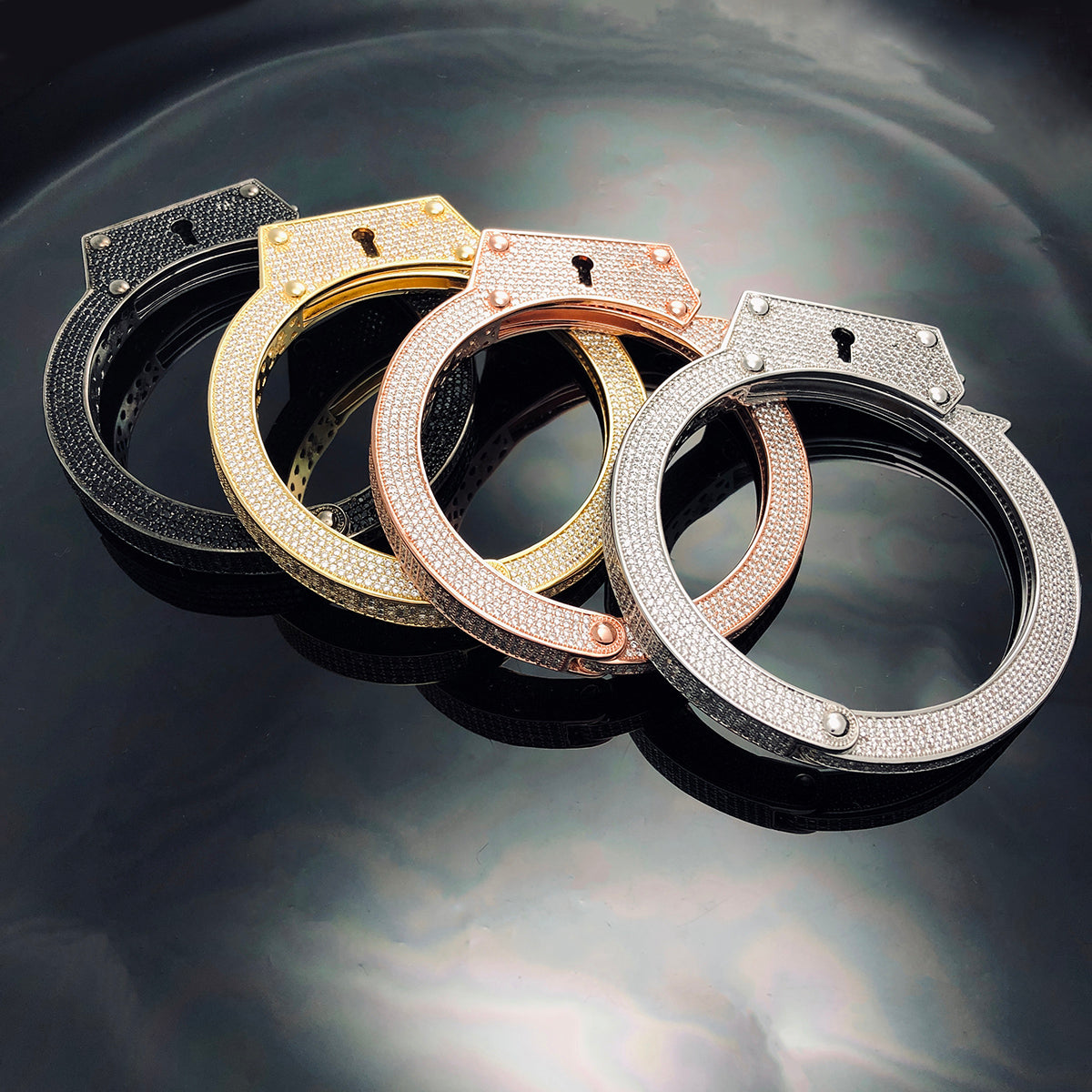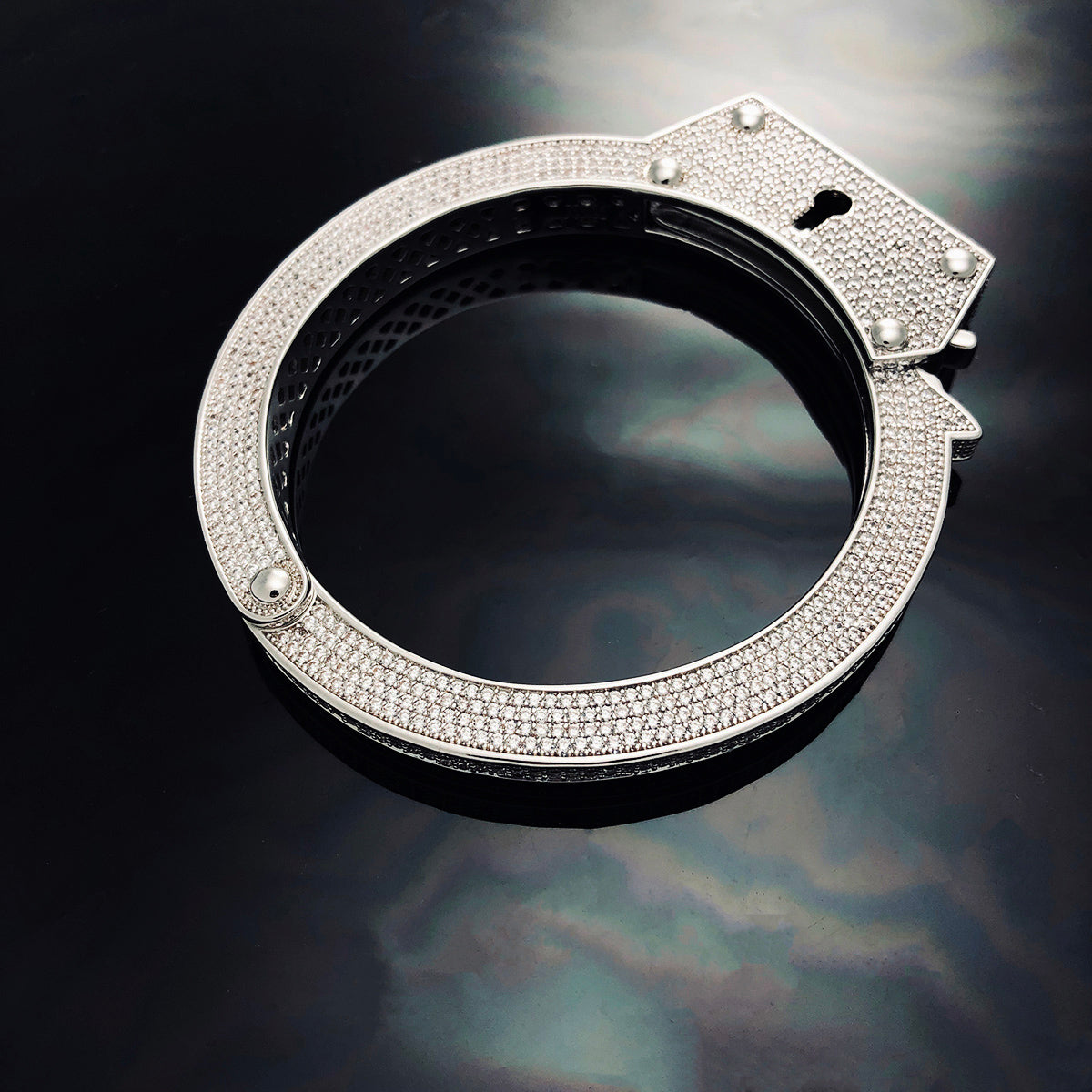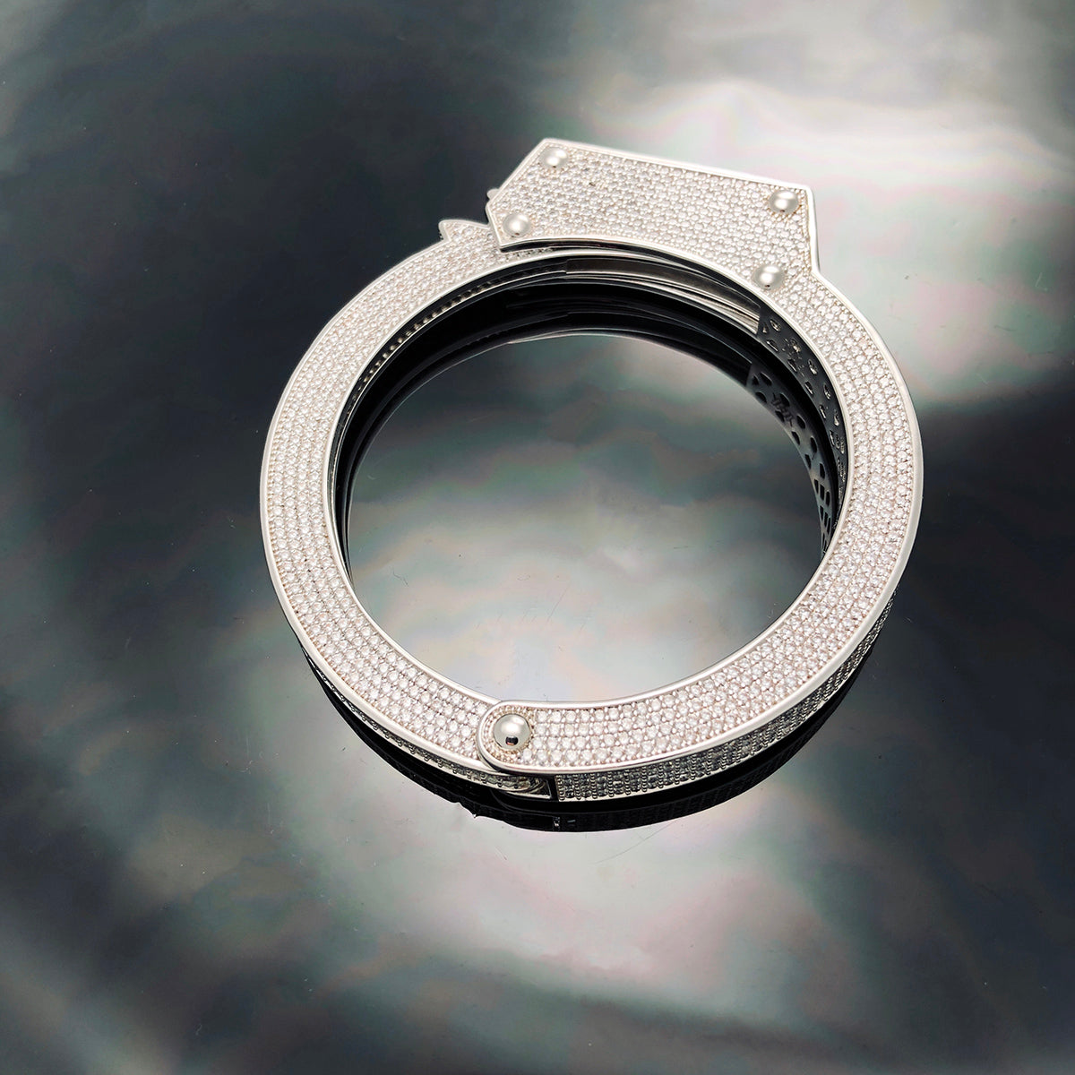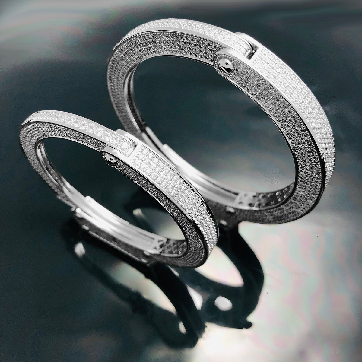 A sleek reimagination of street-luxe, the Iced Out Cuffs Bangle Bracelet combines bold design with refined craftsmanship. Styled by global artists and dancers, this handcuff-inspired piece features a smooth, rounded bangle silhouette fully iced out with premium stones — making it a true showstopper on any wrist.
