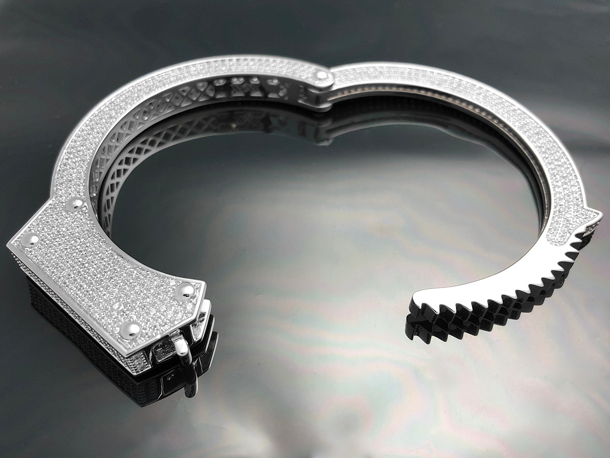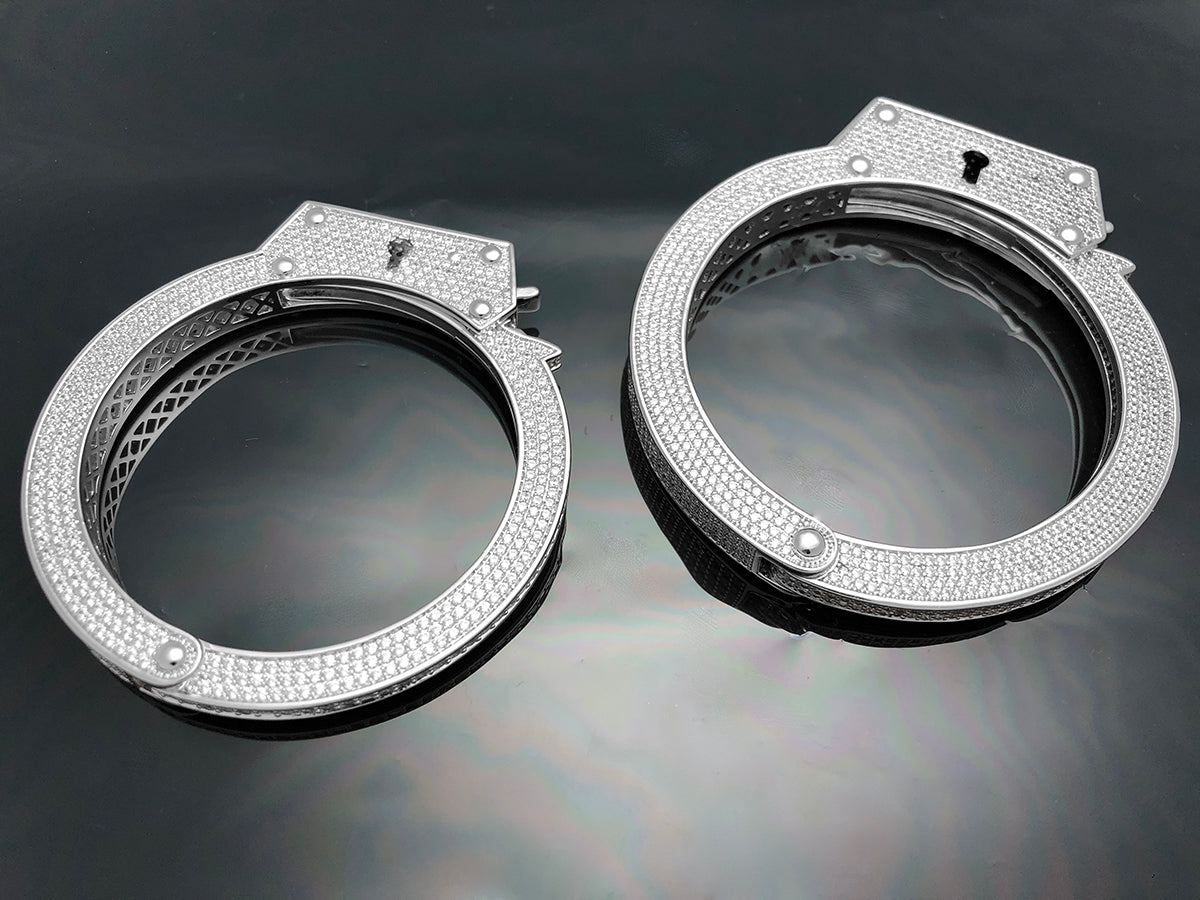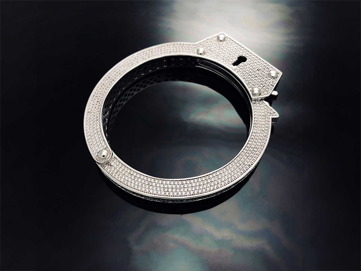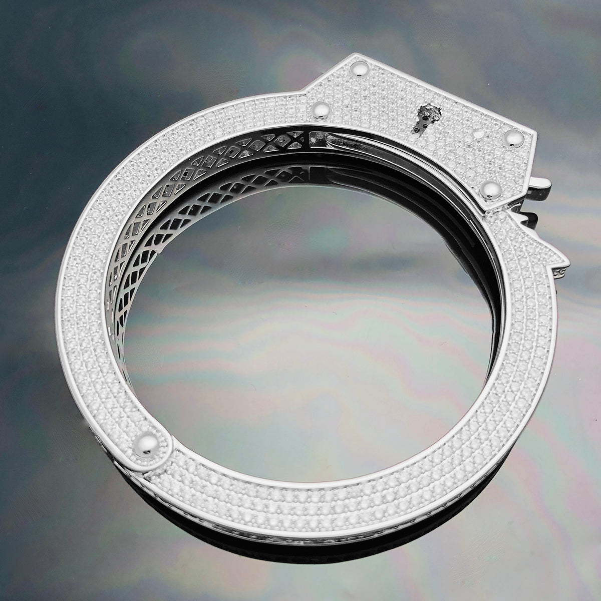 A sleek reimagination of street-luxe, the Iced Out Cuffs Bangle Bracelet combines bold design with refined craftsmanship. Styled by global artists and dancers, this handcuff-inspired piece features a smooth, rounded bangle silhouette fully iced out with premium stones — making it a true showstopper on any wrist.