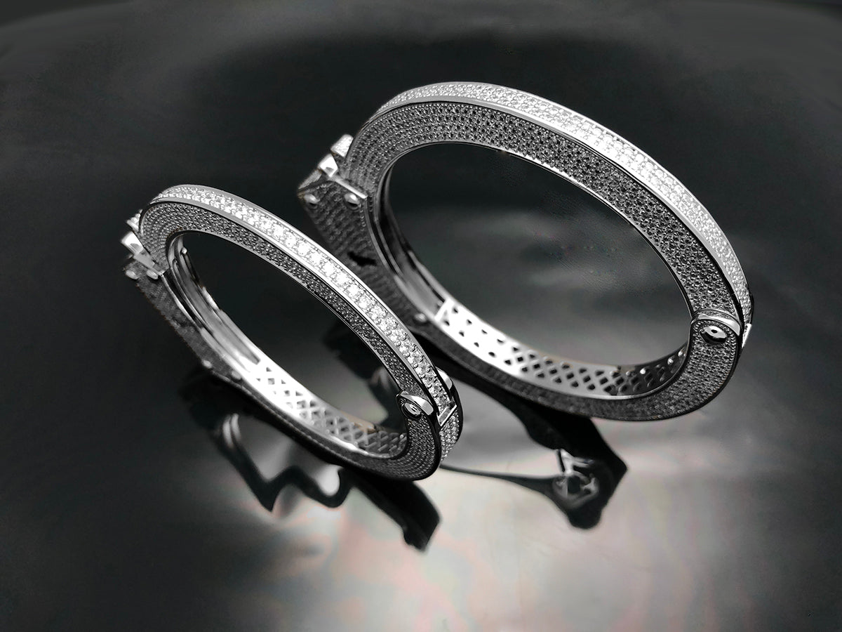 - Smooth, rounded bangle silhouette fully iced out with premium stones