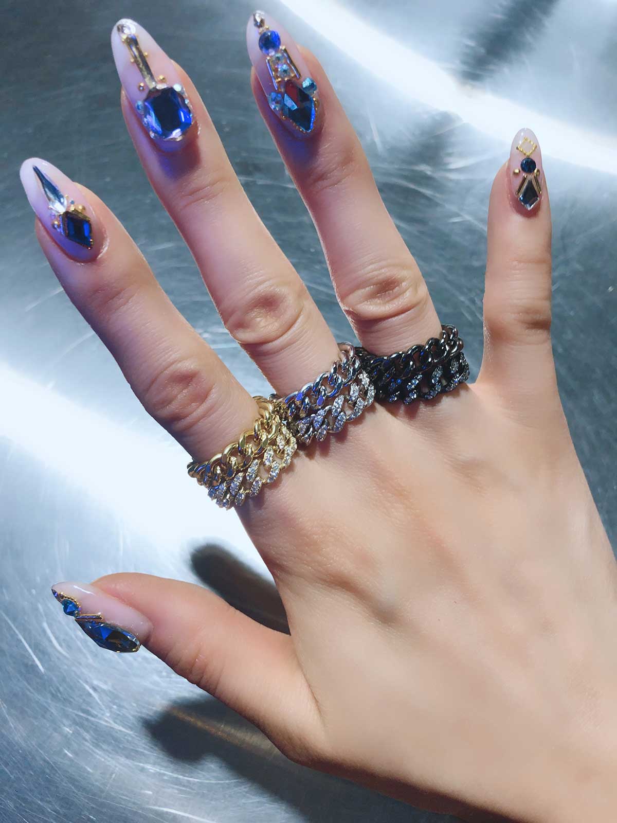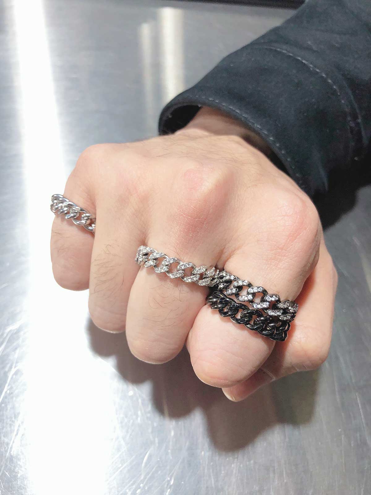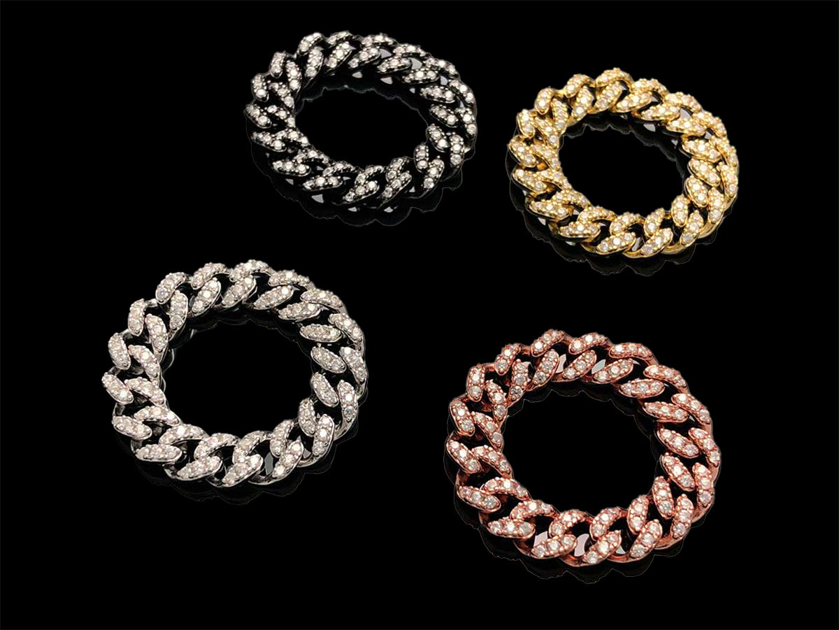 Every ₩OOING piece is handmade by expert artisans. Unlike low-grade accessories where stones are glued, each brilliant-cut stone is securely prong-set by hand, ensuring durability and a flawless luxury finish. The Cuban links form a continuous flow, wrapping naturally around the finger without twisting or breaking its elegant line.