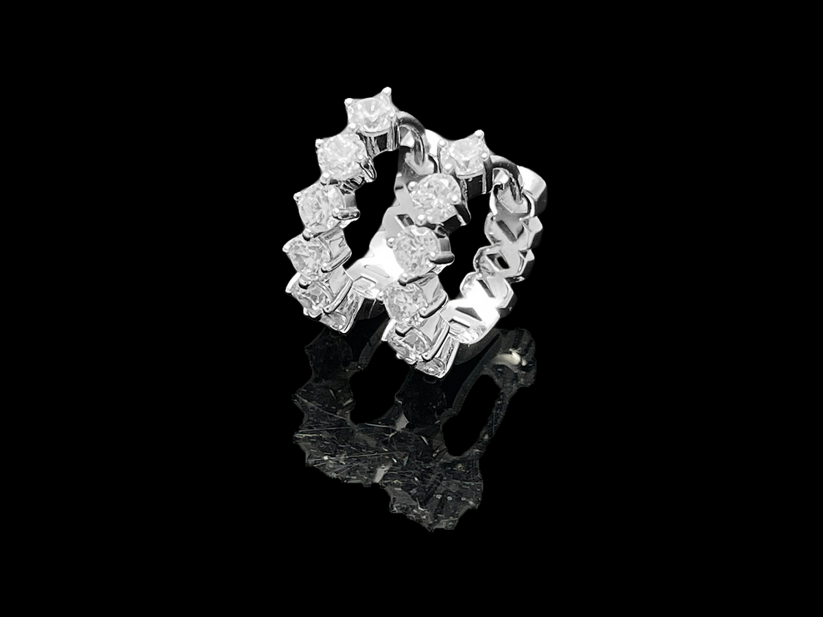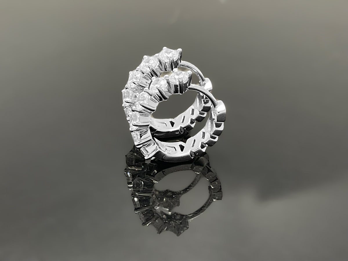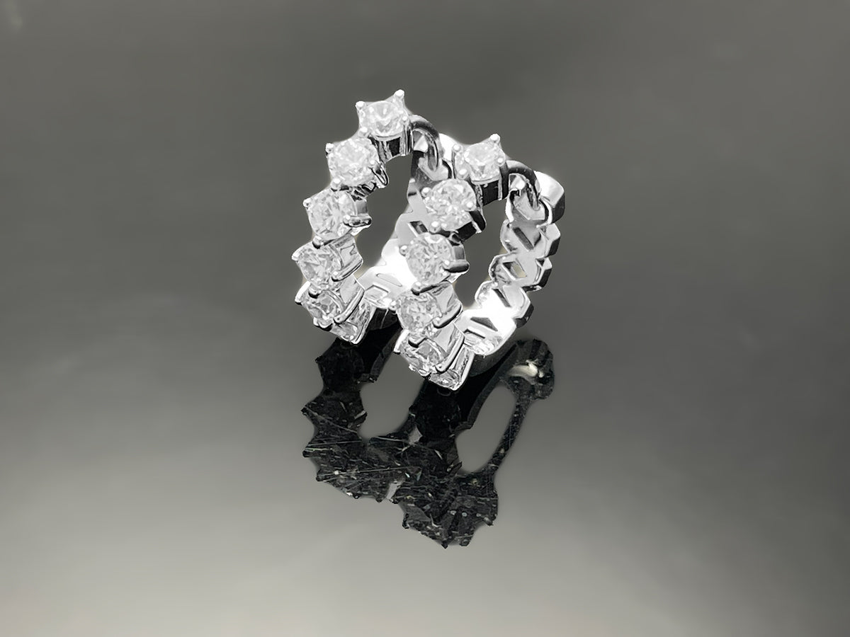 All ₩OOING pieces are meticulously handcrafted by skilled artisans. Unlike low-quality accessories that rely on glue, each brilliant-cut stone is securely prong-set by hand for durability. Inner stones are also forward-facing with full prong settings, ensuring an uninterrupted flow of brilliance around the entire hoop.